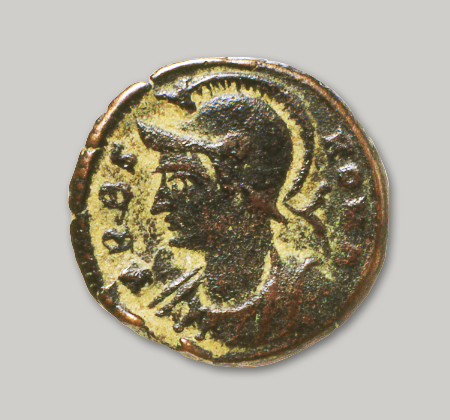 銅 Copper ローマ Rome 330~346年頃発行 ca.330-346 CE. 左:径 18.75 mm, 2.4 g / 右:径 19.0 mm, 2.2 g Left: D. 18.75 mm, Weight 2.4 g / Right: D. 19.0 mm, Weight 2.2 g 分割統治されていたローマ帝国を再統一したコンスタンティンI世(在位306-337)の時代に発行された銅貨です。この時代のローマ帝国は、ヨーロッパ、アナトリア半島、そして西アジアからアフリカに至る地中海沿岸地域を支配下においていました。 Constantine I (r. 306-346 CE.), the first Roman emperor to profess Christianity, reunited the empire and established peaceful hegemony. His rule extended over Europe, Anatolia, and the Mediterranean world. |