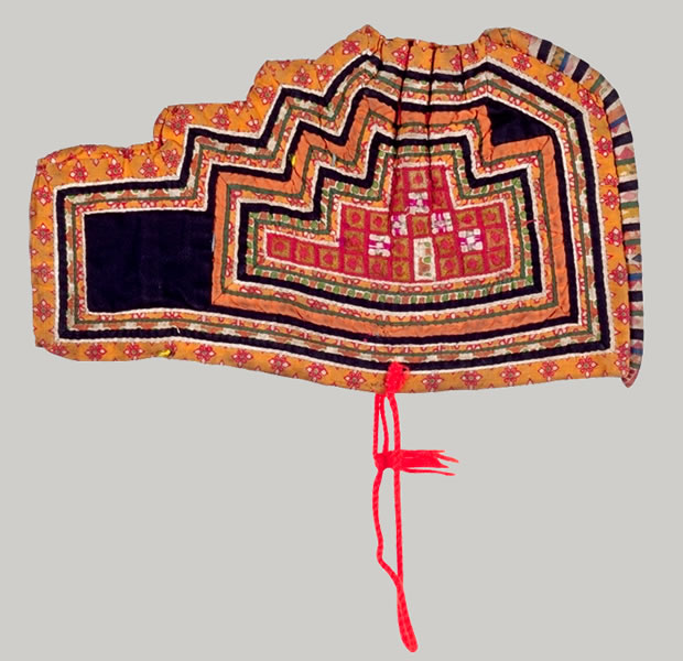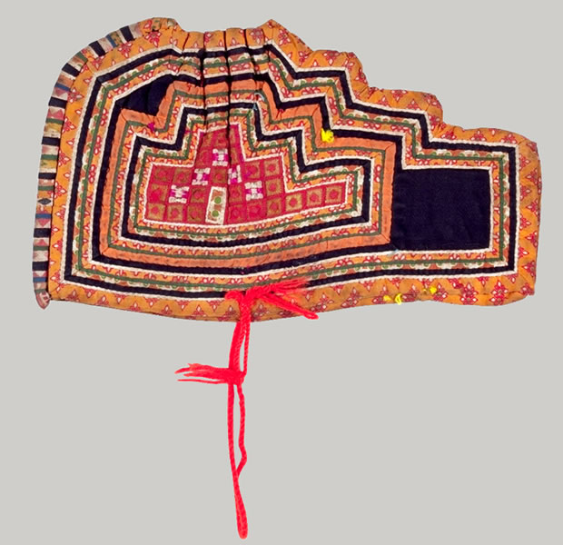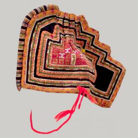 タイ・ミャオ族 Meo (also Miao or Hmong) of Thailand 20 世紀 20th century CE 高 16.0 cm, 長 27.0 cm H. 16.0 cm, L. 27.0 cm タイの山岳に住むミャオ族の子供がかぶる帽子です。鶏のトサカを模したこのような帽子には、子供が悪霊にさらわれないようにという願いがこめられています。この帽子は女児用で木綿にアップリケや重ね縫いで模様を施しています。ミャオ族は中国、ヴェトナム、タイ、ラオスに居住していますが、彼らの起源や名称、歴史については、まだ多くは明らかにされていません。一般的にミャオ族と称される彼らの自称はモン族です。 A girl's cap shaped like cockscomb from a Miao village in Thailand . Children wear such cockscomb caps to protect themselves from evil spirits. This cotton cap is decorated with applique, overlapped sewing, and wool. The Miao are mountain-dwelling peoples of China , Vietnam , Laos , and Thailand , and they call themselves Hmong. Much of their origin and history remains unknown. |
